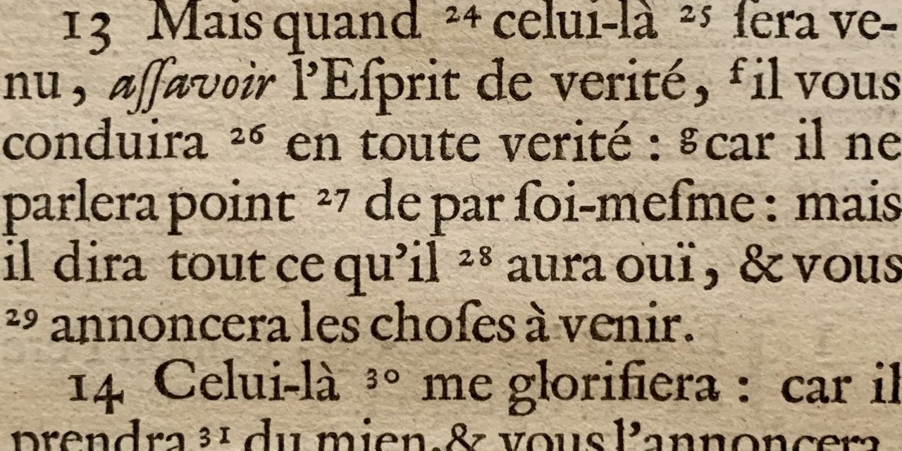 13 Quand le consolateur sera venu, l’Esprit de vérité, il vous conduira dans toute la vérité; car il ne parlera pas de lui-même, mais il dira tout ce qu’il aura entendu, et il vous annoncera les choses à venir.