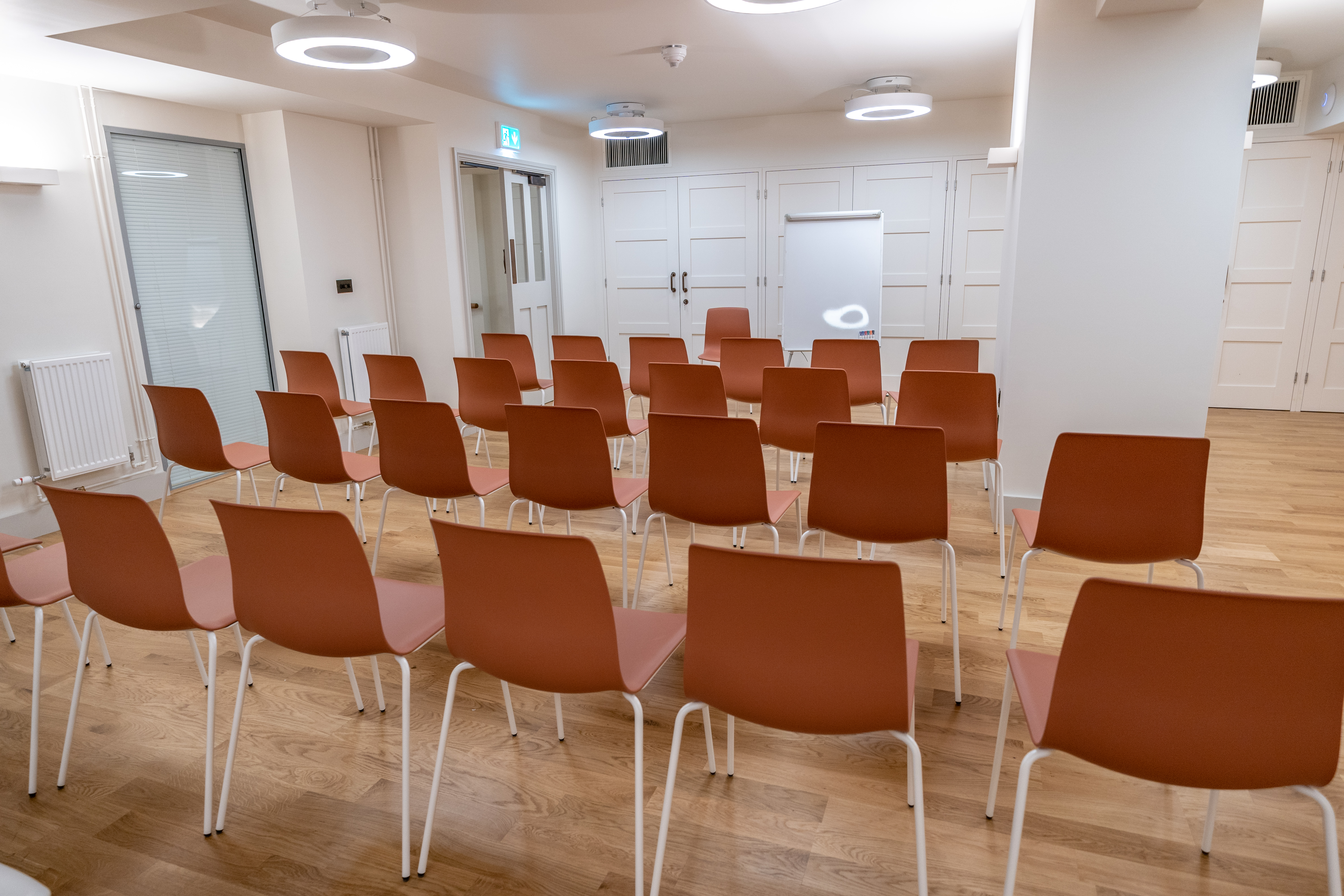 With its removable wall, Rooms 2 and 3 (St Martin & Threadneedle Rooms) comprise our most versatile space. Together, they form a space of 50m2, which can accommodate up to 70 people. The two rooms connect with Room 1 (Soho Room), and can be booked alongside this room, for larger/more complex events.