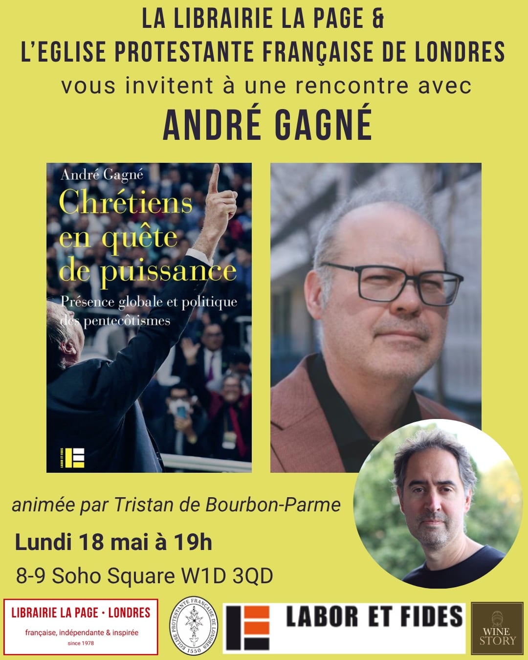 L’Église protestante française de Londres et la Librairie La Page ont le plaisir de recevoir le professeur André Gagné au Temple, à l’occasion de la parution de son dernier ouvrage, Chrétiens en quête de puissance (éditions Labor et Fides).